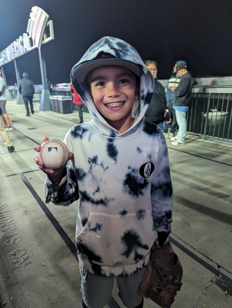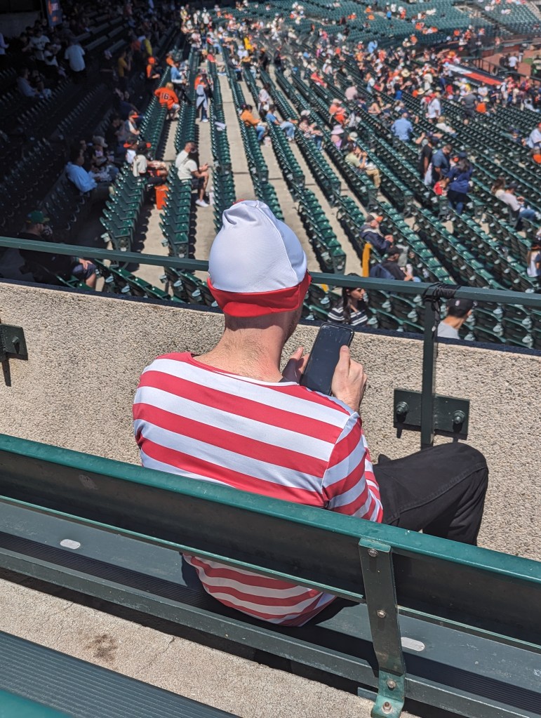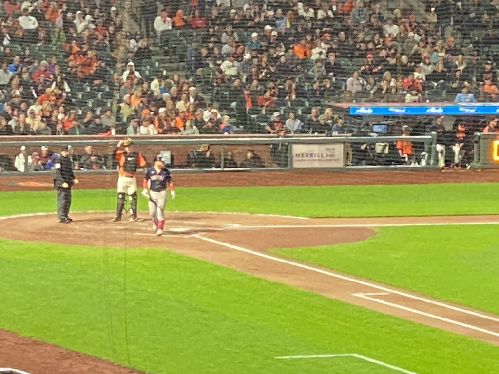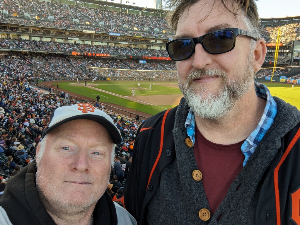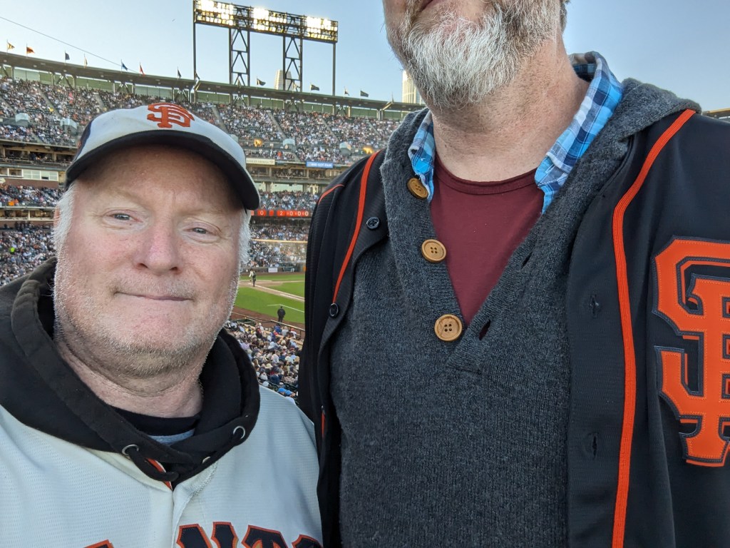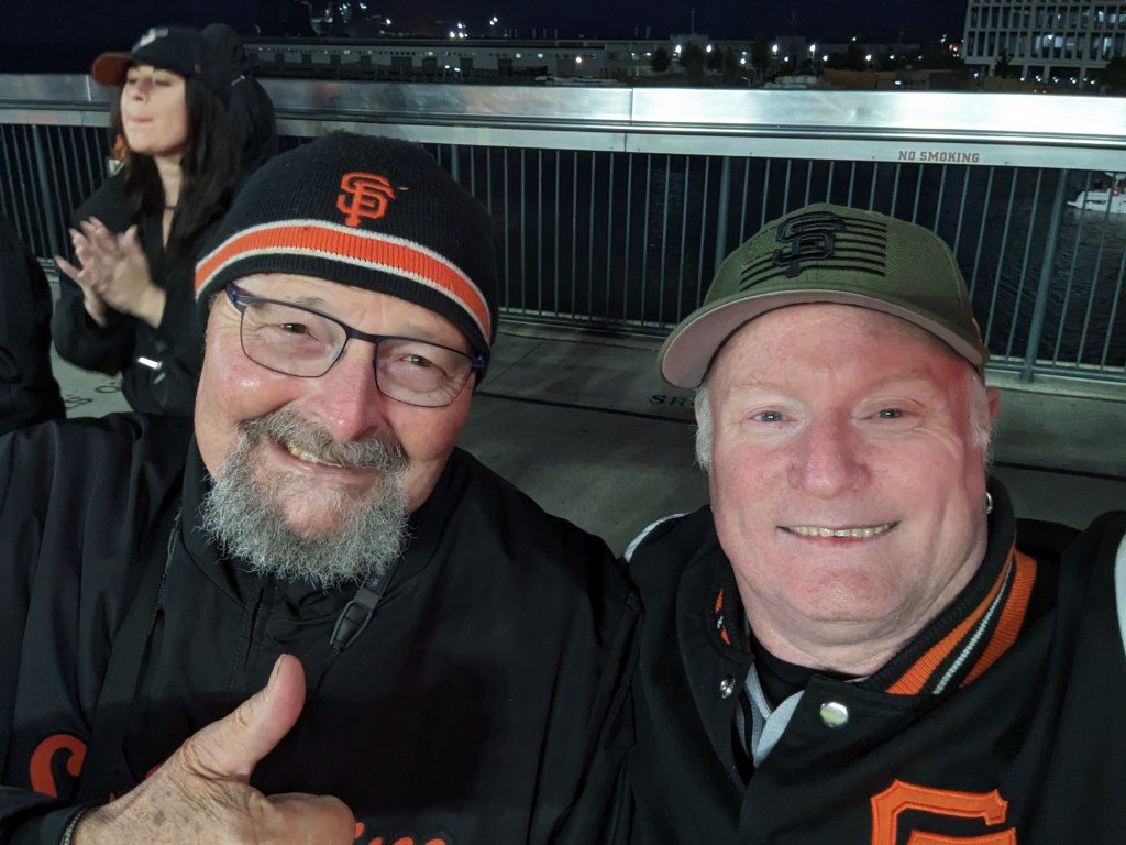 “I thoroughly enjoyed being together with you at the game this evening! Some of the many highlights we shared included meeting a diehard Giants fan who lives in Southern California and was sporting a Splash Hit hat. I was under the impression that the very small number of kayakers in McCovey Cove who have snagged a Splash Hit were awarded the hat as a welcome into the fraternity. When we asked the fan where he got the cap, he incredulously said that he found it in his family’s home! That is one incredible souvenir to come across, Giants supporter… nicely done. It was a thrill to listen to you speak with a retired Air Force service member, who happened to be standing behind our seats with his daughters, about a Cold War story that Russia stunned U.S. military personnel. You are so well versed on a wide variety of topics of discussion, and I appreciate your willingness to share your vast knowledge with me and anyone who is fortunate enough to stroll by Section 152. Traversing through the ballpark to reach the View Level was another high point of the evening, quite literally. You found one of the best views in Oracle Park by happenstance as we walked by a portal along the concourse, and the last time I was up there, the Mission Rock buildings were merely blueprints on paper. Time seems to go by quicker each day, yet the three-plus hours that I had the pleasure of joining you for made me realize just how much excitement and conversations can be packed into a limited time. Until the next opportunity to see you, I thank you for indulging my myriad of questions and ideas, my friend!“