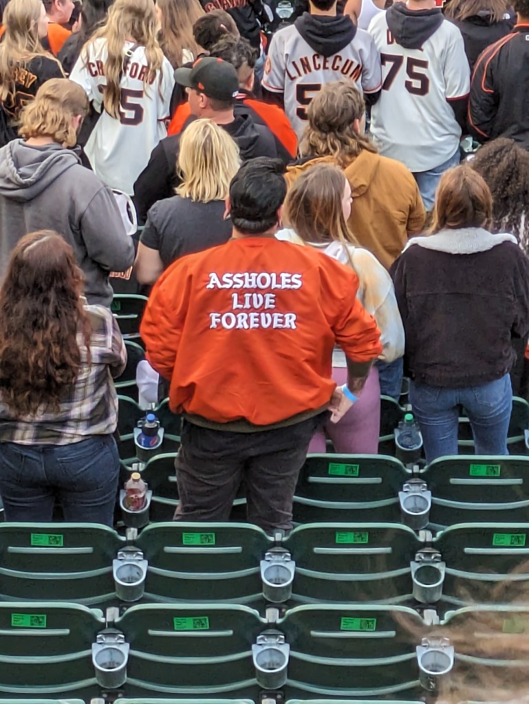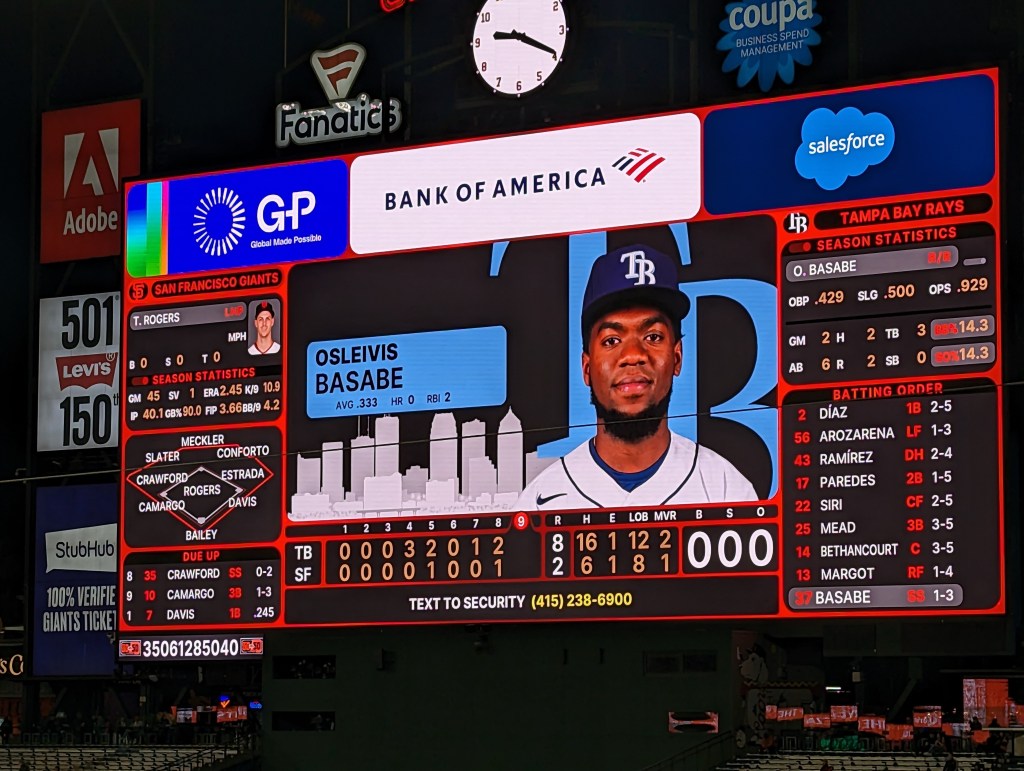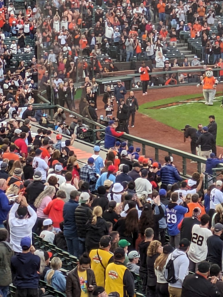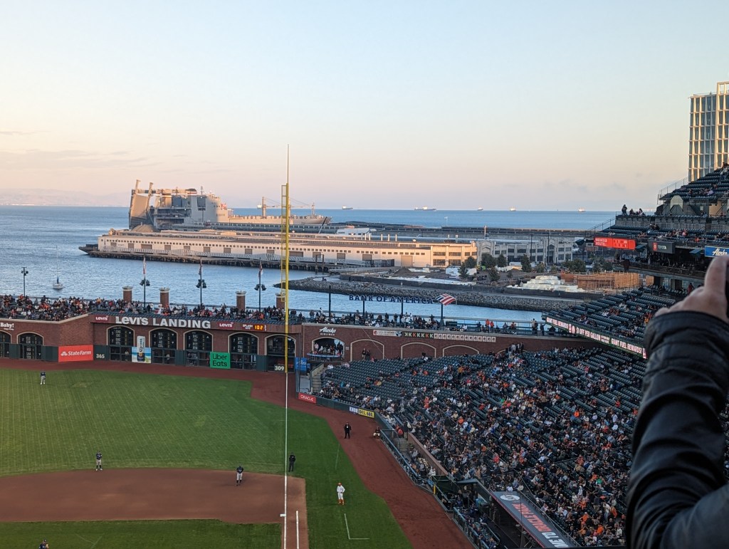 I made sure to get there before the end of the fourth, which is when they close the window down, but it turns out we could have taken a long walk and had a better time than we have watching the game, which the Giants lose handily, 10-2. A couple of SF runs are briefly exciting, but there’s never really a point where the game is in any doubt for the Rays – 5-1 by the end of the fifth is as close as it gets (the final is 10-2), and I have to content myself with good company and a temperate night – after the weekend I spent camping in 100+ heat, an evening at 65 is no small blessing.
