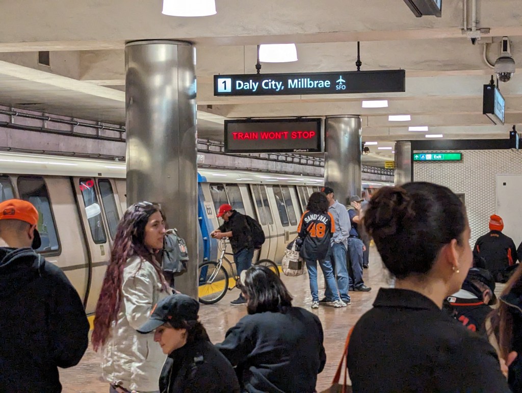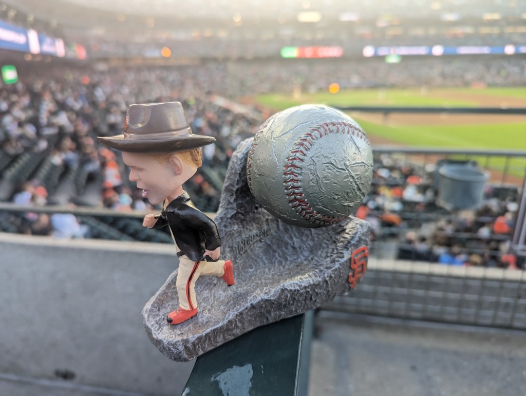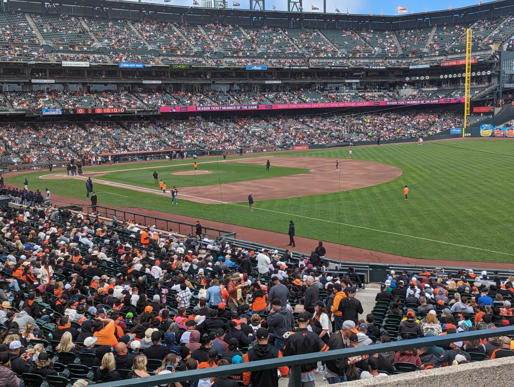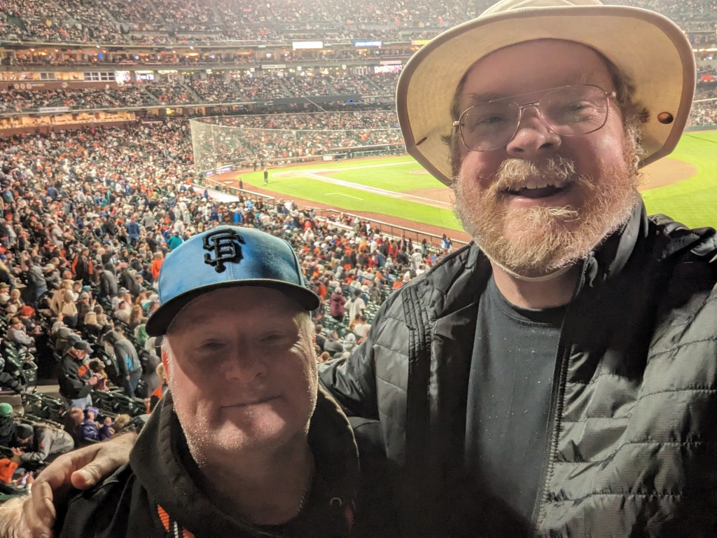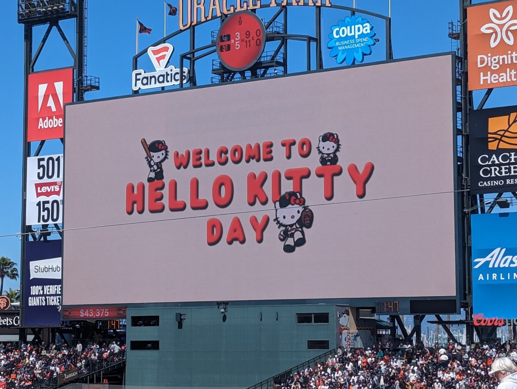 There is also more Giants/As baseball, a good game that starts off routine, tightens up for a worrying couple of innings, and then sees the Giants play like a team that didn’t get outscored 34-9 last week, finishing up with an 8-3 win that’s a lot more of what we expect from the current Giants vs. the current As than what we saw last night. The chants of “SELL THE TEAM” are fewer and farther between, and the crowd smaller, but Oakland fans are still very much present, including a couple of kids, maybe ten or so, who perpetrate a two-man wave right in front of us. With this win, the Giants move into sole possession of second place in the NL West, just three games behind what my dad and Gerry Garner refer to as the HFD, the D standing for Dodgers. HF Dodgers, I now realize, sounds like a truly terrible theme restaurant that you’d find in a mall.