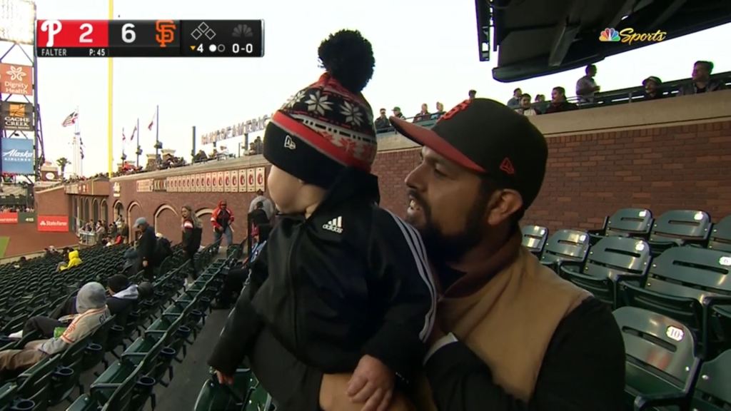 In addition, today was something of a triumph for me because I was able to answer a lot of questions that were not in my usual line, which is to say questions involving baseball facts that people want to know: “How many of those Splash Hits were Barry Bonds’?” “Does a batter get an RBI if he walks with the bases loaded?” “Who just scored a run?” (35, yes, and Bryce Johnson, respectively). It felt like I was demonstrating some of the knowledge that the kind of sports guy that my non-sports friends who think I am a sports guy think I can demonstrate.
