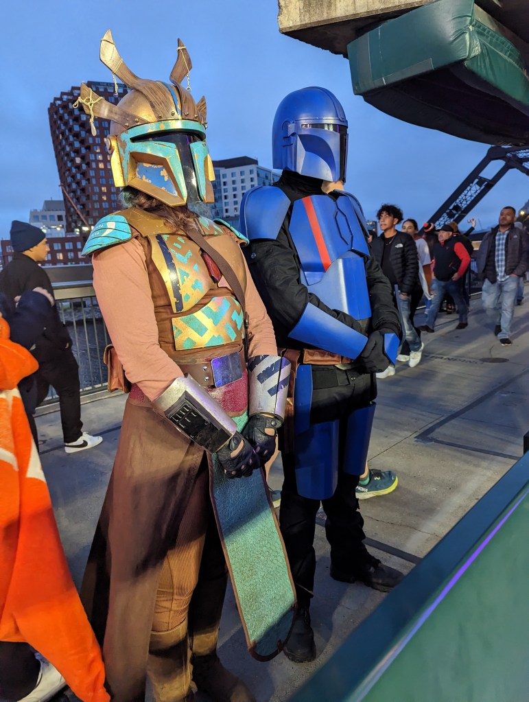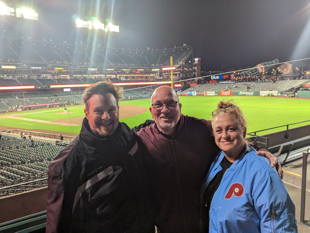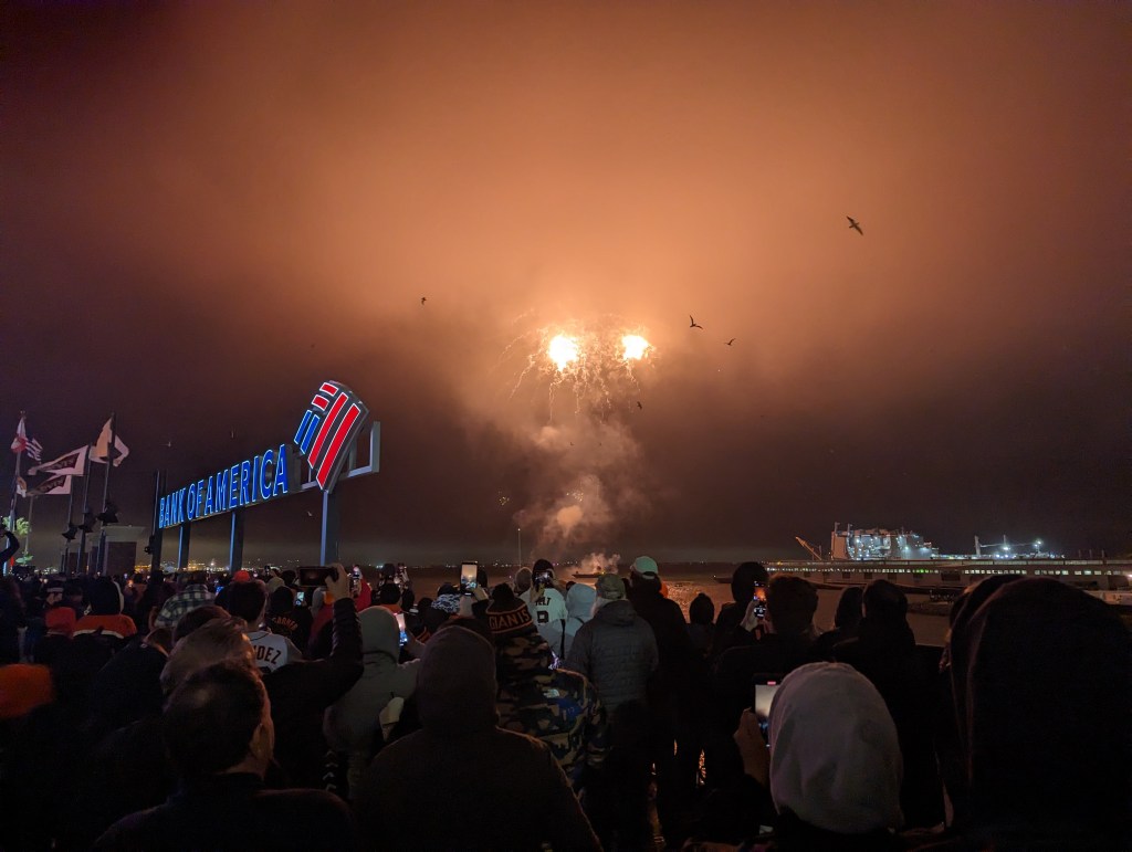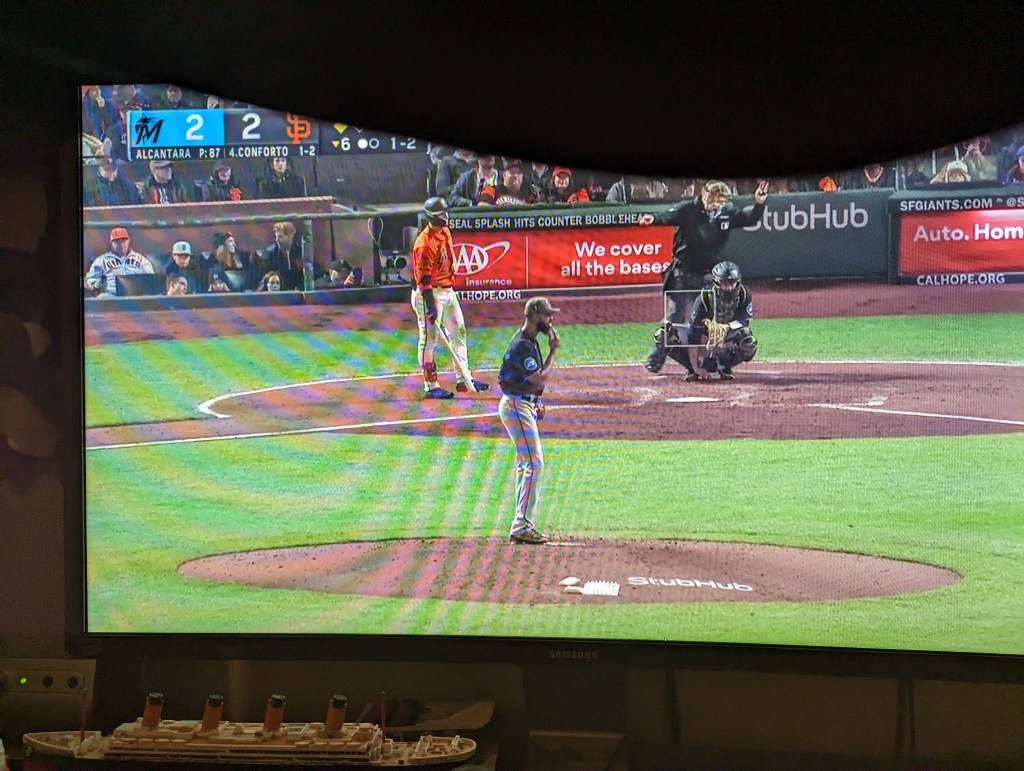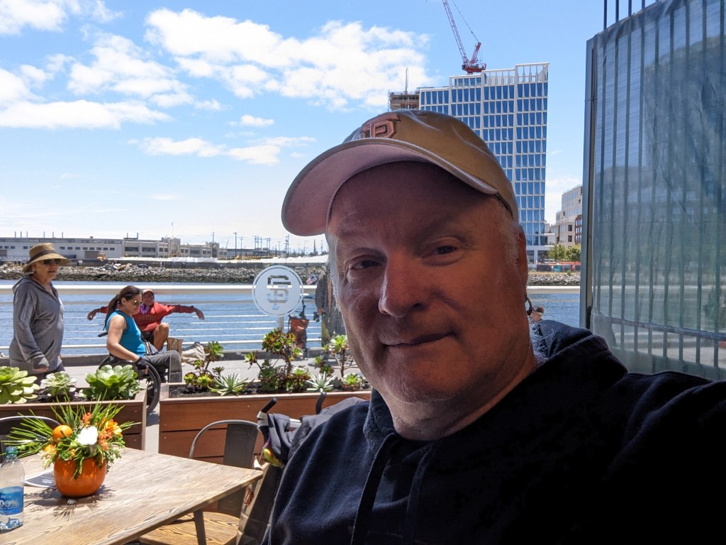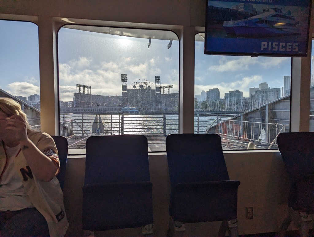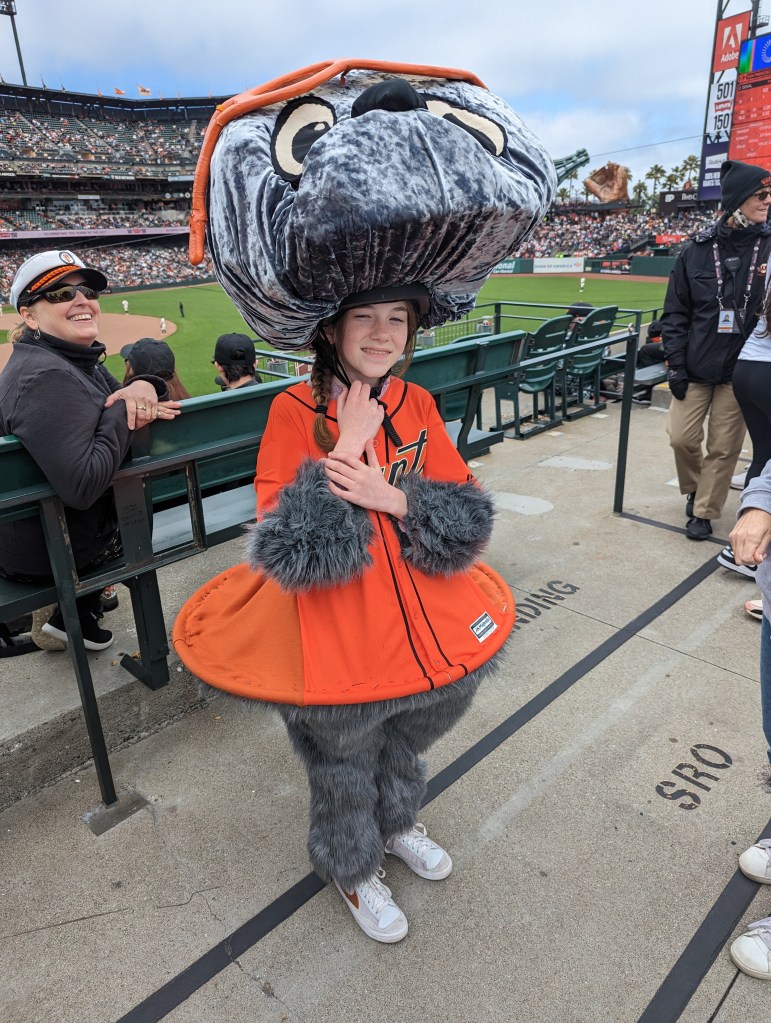 Today was my first solo trip to the park this year. I’m hustling all the time to get people to come out with me, and sometimes it just doesn’t work out. Last year the Giants started a program where season ticket holders can trade in unused tickets for credit that can be put toward other events, and I took advantage of it four or five times (which is how I ended up with all four Harry Potter-themed hats). Today I exchanged one but decided to come by myself. I think I had a vague feeling that, it being Memorial Day, I owed it to Uncle Kevin to come out. I have a complicated relationship with the US military these days – with the US in general, to be honest, as you may recall from my post about national anthems – so I was sort of expecting this Memorial Day to be a thoughtful, reflective one. It turned out there was a lot of baseball to think about instead, though – it was a good game to be solo at, with a lot of action in the early going, and plenty of excitement – triples, home runs, tragic baserunning, twenty-seven hits, eighteen runs, a spectacular three-pitch inning, a baffling and possibly imaginary pitch clock violation that left the radio and TV broadcast crews scratching their heads*, and an eventual 14-4 Giants win. When you add in the perfect weather, it couldn’t have been a better day, unless I’d had someone with me.