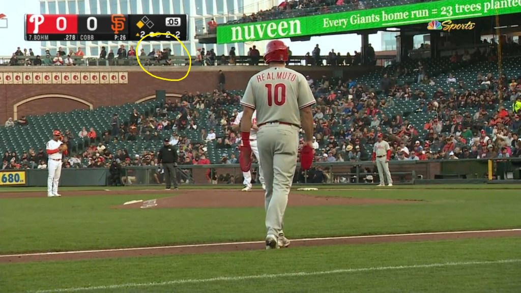 Pretty much everybody who gets involved in a conversation with me on the arcade asks, at some point, if I get a lot of foul balls; I do not. In some ways, this is tragic, because when I picked the seats, I hoped I would – I had dreams of a collection of carefully labeled balls in UV-resistant boxes – but it turns out that it is even harder to get a ball to my section than it is to hit one over the wall in fair territory (there have been 47 home runs into the Cove since 2017, as opposed to seven catchable balls in 152 since I took office). On the other hand, since I spend most of my time looking to my immediate right, where whoever I have taken to the game is sitting, statistically I am more likely to catch a ball with my face than my glove. If I were really sitting in the foul ball Mecca I was hoping for, I would have to pay much, much closer attention than I do, and my experience would suffer for it. In the first year, I wore my glove every day and told every visitor to the section that it was my sworn duty to protect them all from foul balls. Now I still have my glove with me, but it mostly stays in my bag. I have honestly abdicated my responsibilities. Having come very close to taking a batted ball in the face once when I was playing pitch-and-catch with some friends a few years ago, I’m pretty sure that my reflexes will put my hands in front of my face if I see a ball coming, but I am also perfectly happy to hear, as I did today, a dad tell his kids “If a ball comes this way, jump in front of me with your glove.”