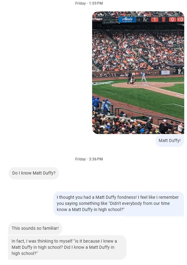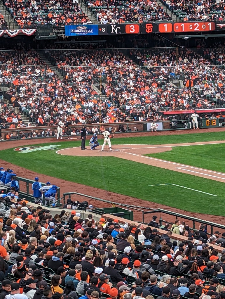 Dad and I only went to one Giants game together, although he did take me to a Sacramento Solons game in the mid-seventies. The Solons were the PCL team in Sacramento (somehow they were the Milwaukee Brewers AAA affiliate, although I had to look that up on Wikipedia just now) and I did not care about them at all, and I suspect Dad didn’t really either. The only thing I remember about the game was that Dad had given me a silver half-dollar – both an enormous amount of money to me and – given my size – also an enormous object – to buy a snack with, and I dropped it and had to listen to it roll away down the slope of the stands. It was a tragedy, as I’m sure the entire game was. The Solons were not a hugely successful team.