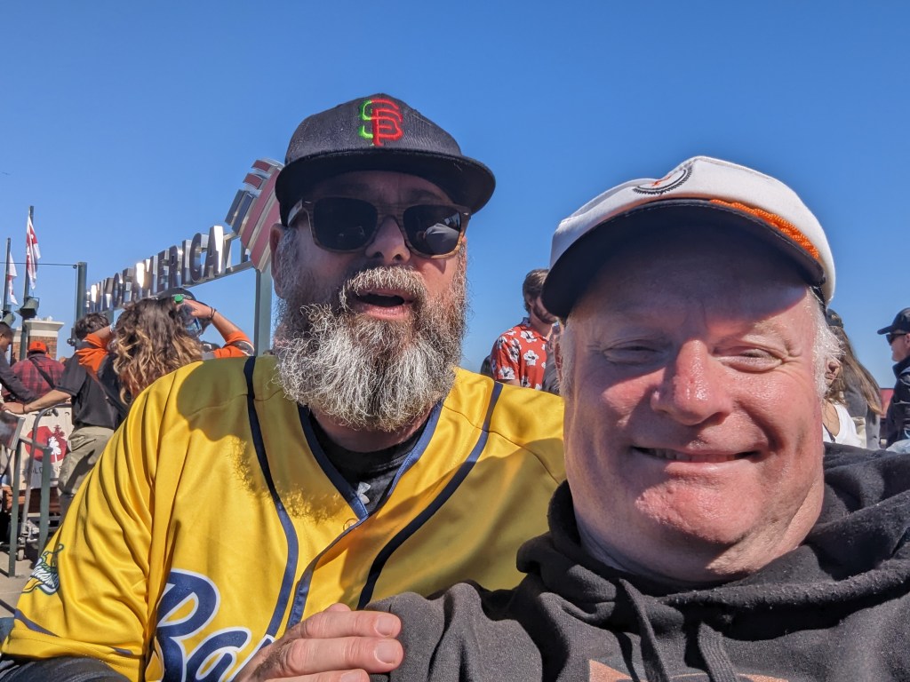In the ’90s, I moved to the Bay Area and discovered, accidentally, that I was a baseball man and a Giants fan. A nighttime driving job with nothing but an AM radio left me with the Giants, Rush Limbaugh, and mariachi music as my only choices for entertainment on the road, and the darkness and the silence and the radio brought back those peaceful days at his feet in the summer dusk of our darkened living room. Behind the wheel of a delivery truck, I was a boy again – the age when baseball is supposed to be woven into your soul – and the seeds my dad had sown flourished and flowered. His pesky Giants became mine, and all of a sudden I knew what he knew.